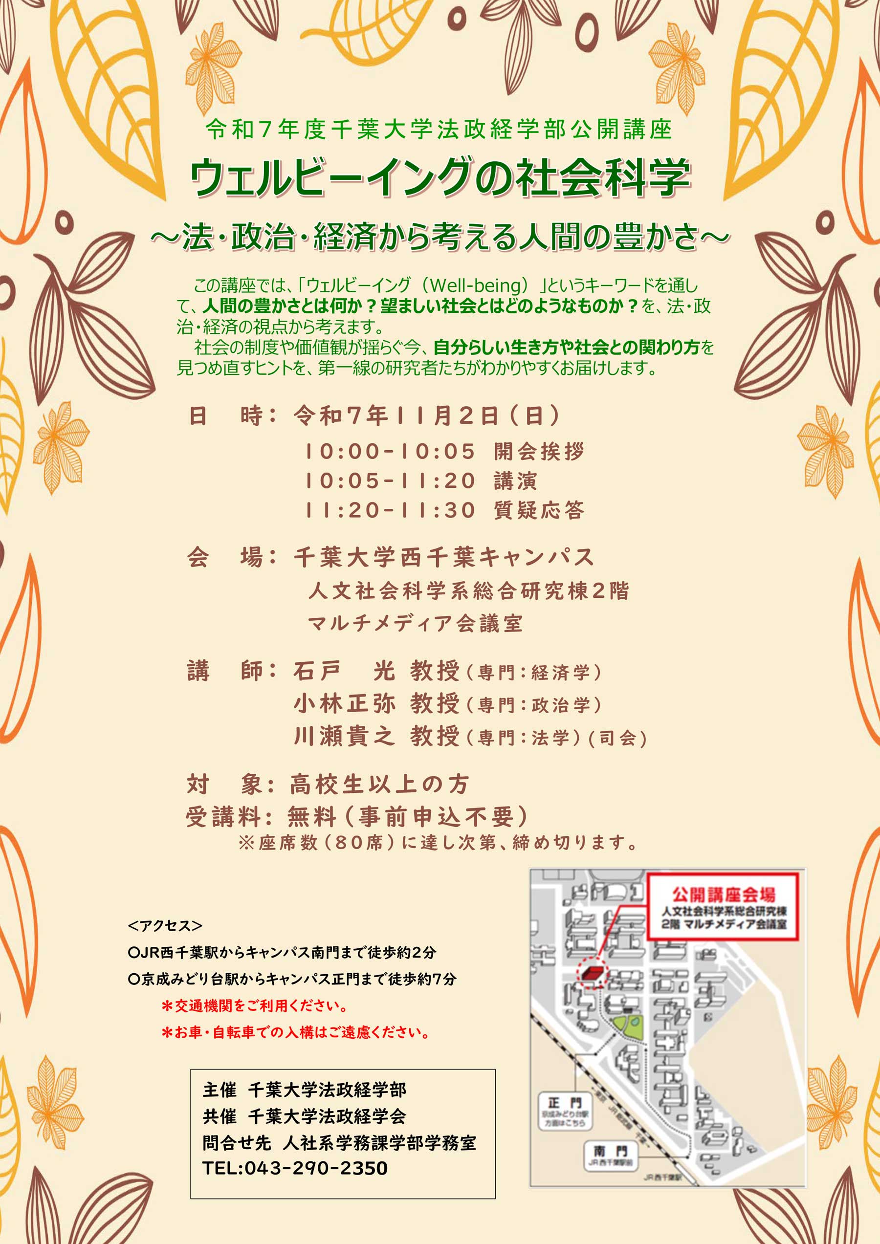 石戸 光(千葉大学国際教養学部教授) 小林 正弥(千葉大学法政経学部教授) 川瀬 貴之(千葉大学法政経学部教授) |